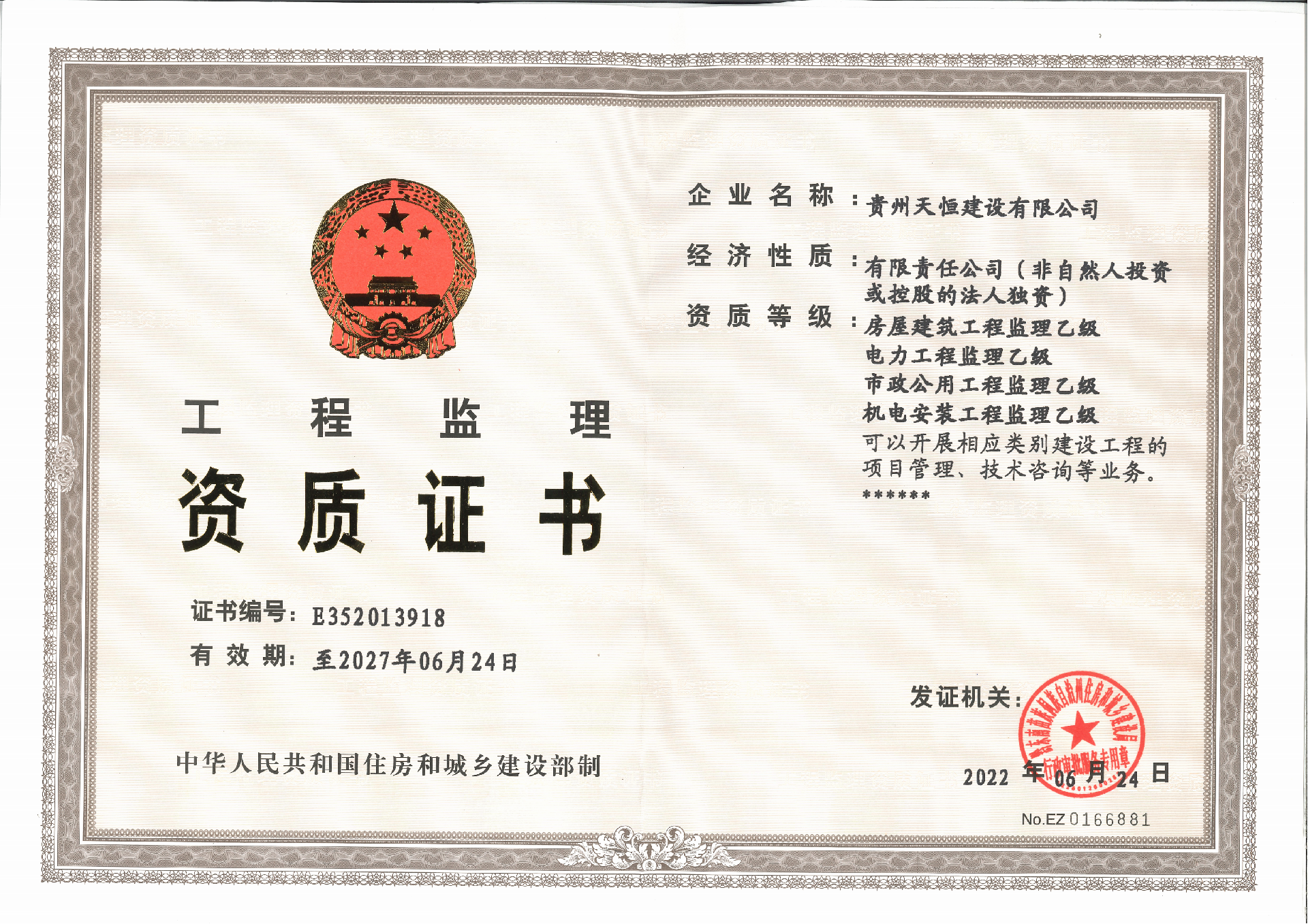 貴州天恒建設(shè)有限公司資質(zhì)范圍及等級(jí):