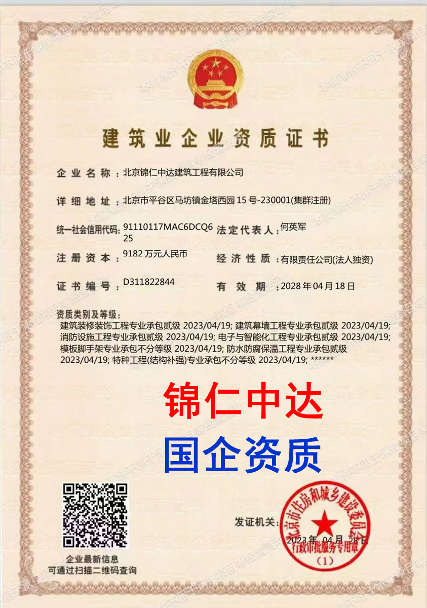 北京錦仁中達建筑工程有限公司資質